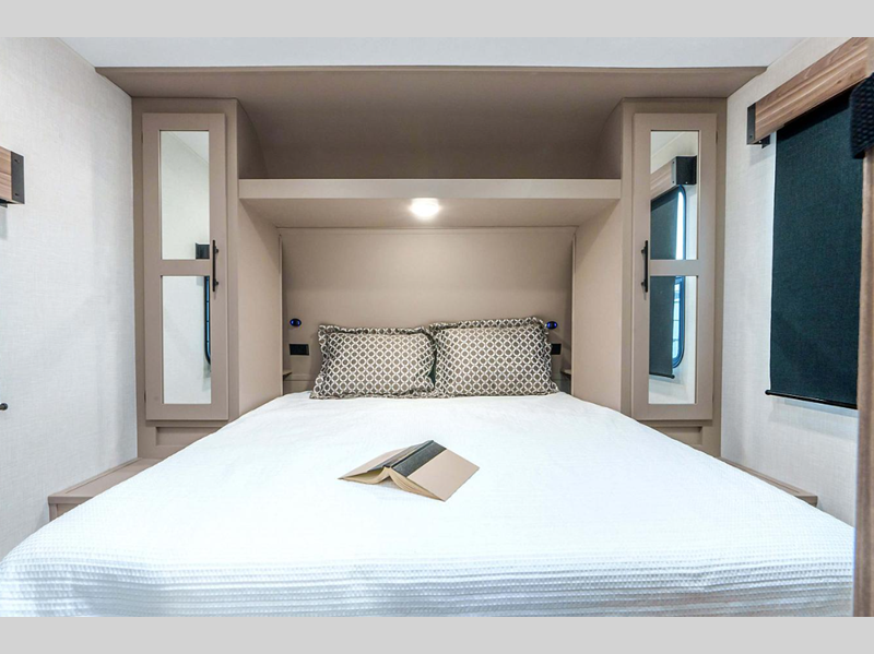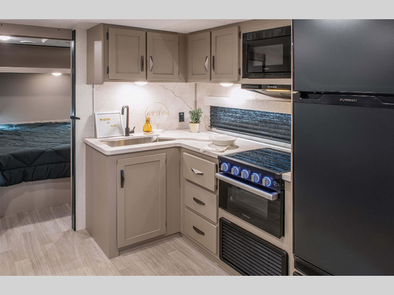 Sleeps 3 Slides 1 Ext Width 8 ft Ext Height 10 ft 10 in Int Height 6 ft 6 in Interior Color Chocolate Fresh Water Capacity 45 gals Grey Water Capacity 64 gals Black Water Capacity 32 gals Tire Size 15" Furnace BTU 30000 btu Available Beds Queen Refrigerator Type 12V Refrigerator Size 10 cu ft Cooktop Burners 3 Shower Size 30" x 36" Number of Awnings 1 LP Tank Capacity 20 lbs Water Heater Type On Demand Tankless AC BTU 13500 btu Awning Info 19' Power w/LED Light Strip Axle Count 2 Number of LP Tanks 2 Shower Type Standard Electrical Service 30 amp Similar Floorplans