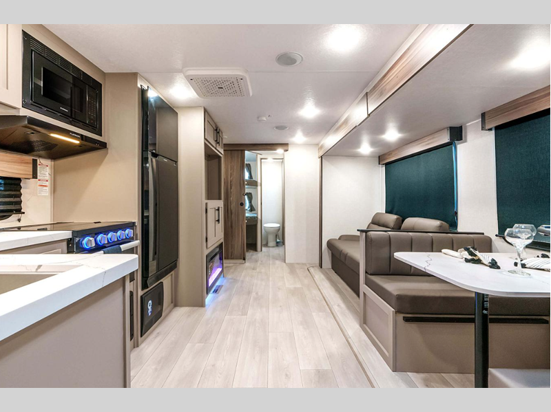 Sleeps 2 Slides 2 Length 31 ft 11 in Ext Width 8 ft Ext Height 10 ft 10 in Int Height 6 ft 6 in Interior Color Chocolate Hitch Weight 700 lbs GVWR 8800 lbs Dry Weight 6570 lbs Cargo Capacity 2230 lbs Fresh Water Capacity 45 gals Grey Water Capacity 62 gals Black Water Capacity 32 gals Tire Size 15" Furnace BTU 30000 btu Available Beds Queen Refrigerator Type 12V Refrigerator Size 10 cu ft Cooktop Burners 3 Number of Awnings 1 Axle Weight 5870 lbs LP Tank Capacity 30 lbs Water Heater Type On demand tankless AC BTU 13500 btu Awning Info 19' Power w/LED Lighting Axle Count 2 Number of LP Tanks 1 Shower Type Standard Electrical Service 30 amp Similar Floorplans