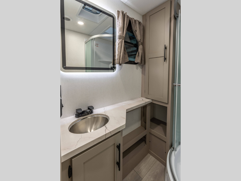 Some of the key features found on the Connect are the RV Airflow system, solid construction, and the residential kitchen amenities. Each model is built for all seasons since there is added insulation, and the UVA and UVB resistant gelcoat Lamilux exterior fiberglass is ultra durable so you can enjoy your RV for years to come. Inside, you'll find upgraded linoleum throughout, an 82" ceiling height, flush-floor slide outs, and many more at-home comforts!