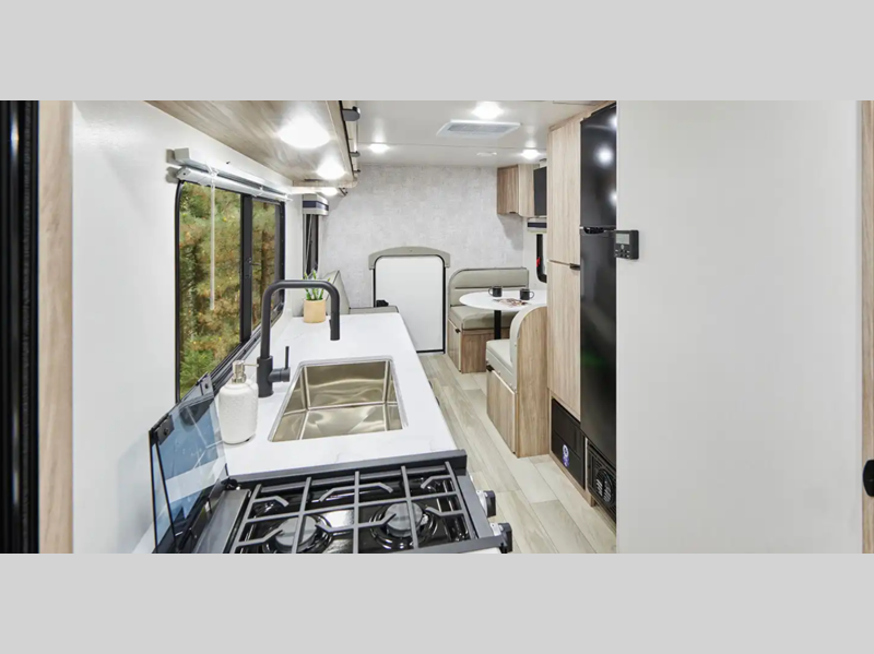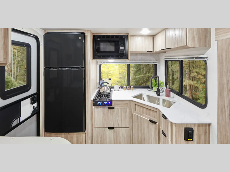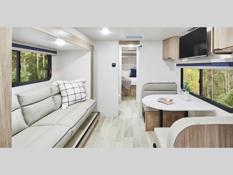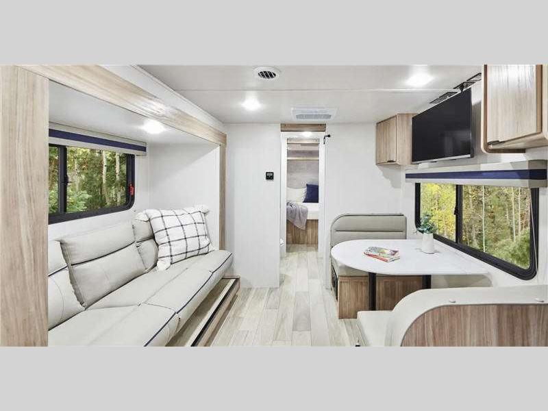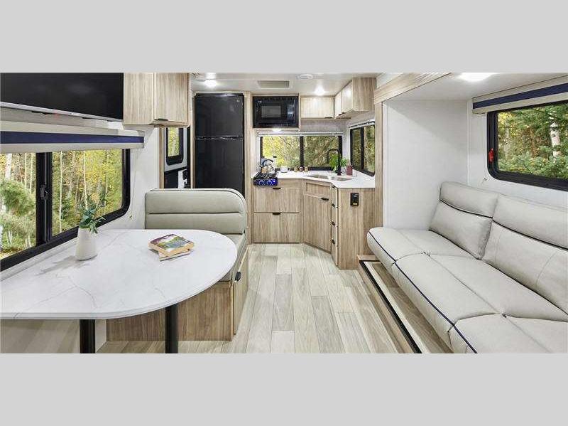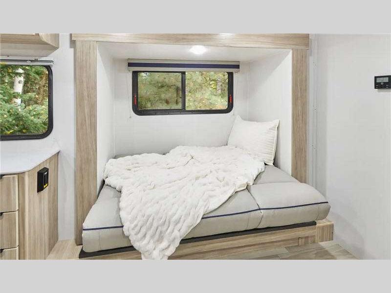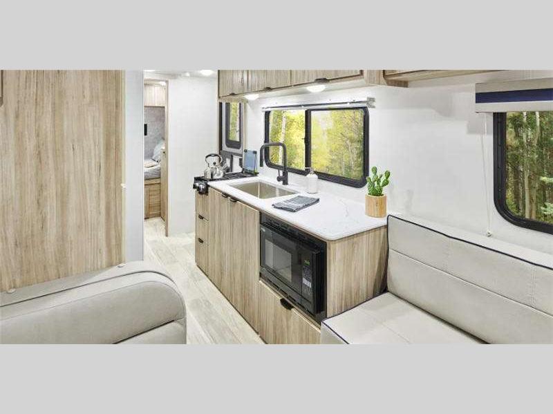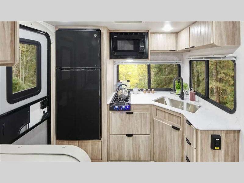 Sleeps 3 Slides 1 Length 23 ft 11 in Ext Width 7 ft Ext Height 10 ft 6 in Int Height 6 ft 4 in Interior Color Santorini Hitch Weight 432 lbs GVWR 6000 lbs Dry Weight 4424 lbs Fresh Water Capacity 31 gals Grey Water Capacity 25 gals Black Water Capacity 25 gals Tire Size 235/75R15C Furnace BTU 18000 btu Available Beds RV Queen Refrigerator Type 12 Volt Refrigerator Size 10.3 cu ft Cooktop Burners 2 Shower Size 30" x 36" Number of Awnings 1 Axle Weight 3000 lbs LP Tank Capacity 20 lbs. Water Heater Capacity 6 gal Water Heater Type Gas/Electric DSI AC BTU 13500 btu Awning Info 16' Power w/ LED Lights Axle Count 2 Number of LP Tanks 1 Shower Type Standard Similar Floorplans